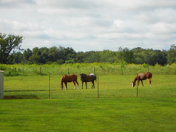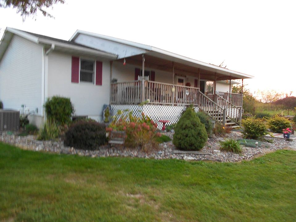 Country living at its finest!!!.. 3200 sq ft Ranch Home on 11 acres with walkout finished basement. Home consists of upstairs..master bedroom 24x12 and his/hers closets,other two bedrooms are 12x12,Full bath with double sinks, Living room 24x16, Kitchen/Dinette 23x12 complete with oak cabinets, French doors going out dinette to upper back deck,Basement consists of: Family room 28x24, Furnace room 12x12, 4 bedrooms, 12x12, Full bath/Laundry room with double sinks . Covered front porch 35x8, Deck, 3 car detached garage with double barrel wood burner and furnace, Horse barn 24x24, large chicken coop 20x8 with electric, single car garage, 24x48 concrete slab with electric and water. There is water and electric through most of the property, fenced and crossed fenced for horses. Small pond
