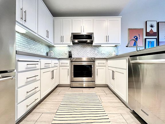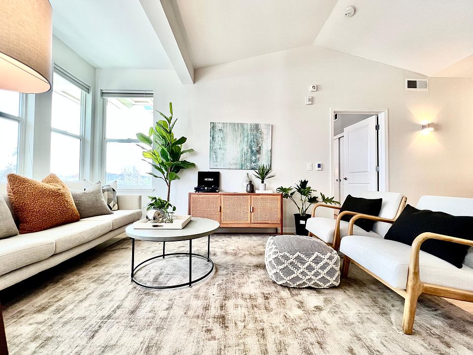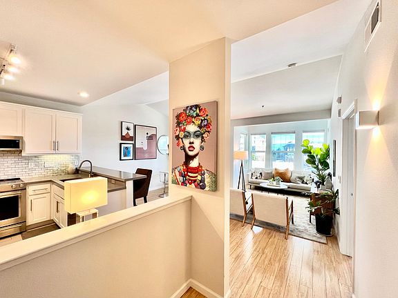 Old and new collide in this gleaming location. This serene top floor home sits right between Lafayette Square Park and Preservation Park. This squeaky clean neighborhood has manicured hedges and rubs elbows with Oaklands most impressive buildings. Come home to fresh hardwoods and a crisp Carrera and quartz kitchen and your own laundry. The home's newer features are elevated by the high ceilings and incredible views of the steel and glass towers and trees from both parks. This dog friendly building features an elevator and deeded garage parking. There are multiple markets and eateries that are walkable. Come see what life can be like in Old Town. UNFURNISHED: $2500. FURNISHED:$2800 NO SMOKING. This rental includes one assigned space that is near the elevator. This is for 6 months minimum lease and the landlord will not allow pets. It does not include all of the bedding and artwork or the two club chairs in the photos