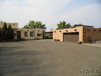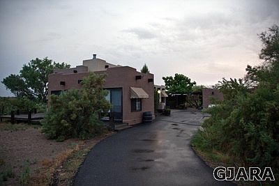 Unique southwestern style home with breathtaking 360 views and close to Confluence Park and the Colorado River! Every room leads to a deck that surrounds the house with a covered patio between the main house and the detached garage. Garage has bonus room attached that could be converted/used as a guest room. Split floor design with guest room off kitchen and second area that could be converted to another bedroom. Master bedroom has additional loft area with built in shelving and skylight. House has solar and built on over 3 acres with 3 shares and set back from the road for additional privacy. A must see home built and designed by Carl Vostatek.Bathrooms Info: 1-full, 1-1/2