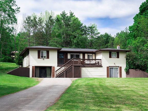 Located in the highly sought-after Windsor Schools, this unique property spans over 14 wooded acres across two combined lots—offering space, privacy, and potential. Conveniently near the highway for easy commuting, the home features hardwood floors and a generous eat-in kitchen, perfect for gatherings. Upstairs offers five bedrooms and two full baths—ideal for those needing extra space. The full basement has great potential for added living area and includes a large wood stove to help heat in winter. Recent updates include a newer roof, boiler, and hot water heater. The garage under the house has slider doors but could easily be converted to a garage door. On the second lot is a 20x24 detached garage with a 16-foot oversized door and 200-amp breaker box—separately metered and ideal for a workshop or extra storage. The large front and back yards and wooded acreage offer plenty of space for recreation or future plans. A great opportunity for anyone seeking room to grow or versatile use.