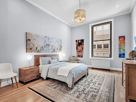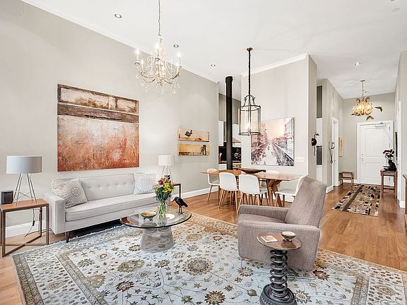 Beautiful elements and modern comforts include central air conditioning and heating, LG washer and dryer closet, spa-like bathrooms, pristine hardwood floors, top-of-the-line stainless appliances, cast iron columns, and very generous closet storage reaching the height of the 12' ceilings!