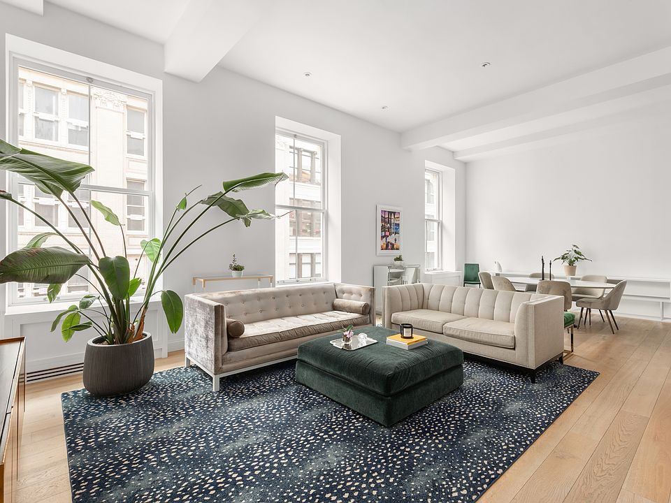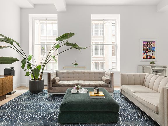 Available early/mid September. Furnished or unfurnished. Welcome home to this 3 bedroom 2.5 bathroom apartment at the historic O'Neill condominium in prime Chelsea. This rare prewar duplex offers an expansive 2,168 square feet of sophisticated space - meticulously designed for comfort and style. Luxurious interiors are marked by soaring 12'8" ceilings, elegant wide-plank floors and refined finishes throughout. Upon entering you are greeted with a sprawling open concept 32 foot wide living and dining area along the southern side of the building. Ceilings measuring almost 13 feet, oversized windows and an open kitchen make 5H a hosts dream - perfect for entertaining friends and family. The kitchen is meticulously appointed for the chef; premium custom cabinetry, top-quality stone countertops and backsplash, a large island, and high-end stainless steel appliances enhance the culinary experience. Take the stairs to the lower "bedroom level" of this home where three perfectly proportioned bedrooms will be found, along with an in-unit washer/dryer. The primary bedroom suite is a divine retreat with high ceilings and a generous layout. The sanctuary-like ensuite is beautifully-tiled full bath with dual sinks, a soaking tub and separate shower. Each of the second and third bedrooms also offer high ceilings, oversized windows, ample closets and sit nearby a full hall bath. Built in 1887 as a block-long department store and converted to a luxury condominium in 2005, the O'Neill at 655 Sixth Avenue is a handsome 7-story elevator building with a 24-hour attended lobby, fabulous 4,000 sq ft roof terrace with an outdoor kitchen, loungers and private seating areas, common laundry and bike storage. The great Chelsea location between West 20th and 21st Streets is moments to the new Limelight market, Trader Joe's, Whole Foods, great restaurants, shopping, fitness facilities and public transportation. Pets are allowed.