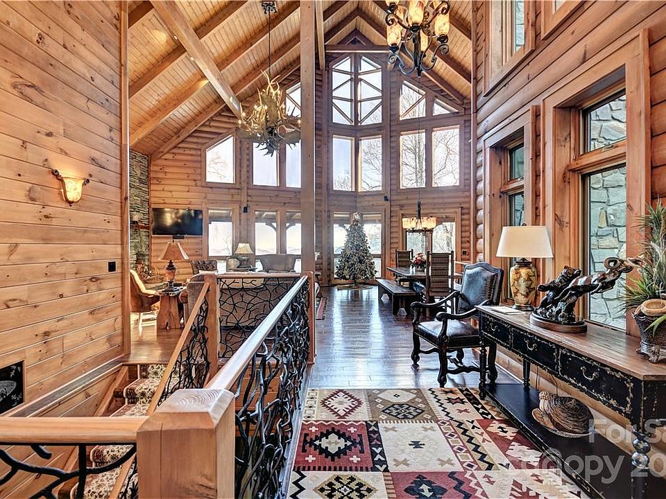 Elegant, Luxury Log home in the gated Smoky Mountain Retreat at Eagles Nest. Home is centrally located to many area attractions i.e. Cherokee Casino, Cataloochee Ski area, Dollywood, Smoky Mountain National Park, Blue Ridge Parkway. Asheville, Biltmore House, Hiking, fishing, rafting, photographers Dream, and much more. Large window with stunning long range views including a view of Lake Junaluska. Home includes Luxury bedroom, elevator, 1100 bottle wine cellar, generator, 3 stone fireplaces, 2 car garage with large parking area. all beautiful furnishings throughout the house to stay with the house minus owners personal items. Beautiful water feature just to the right of the Mahogany entrance door and beautiful Porte-cochere. The roads are paved and the dues pay for excellent maintenance of the roads summer and winter. Smoky Mountain retreat does allow vacation rentals, however, all vacations rentals in Smoky Mountain retreat must go through Smoky Mountain retreat at Eagles Nest