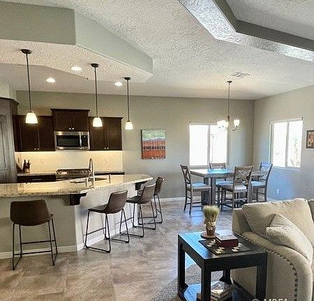 Extra deep 3 car garage with 8 ft headers (double bay is 28'5" deep & single bay is 24'5") - French Doors open up to a Beautiful backyard Oasis! Brand NEW Gas/Propane Range - Granite countertops throughout the home - Dark Shaker style Cabinets - Under mount sinks - Sink in Laundry room - Soft Water System - R/O drinking water system - Built in Media shelving/niches in Living room with Electric Fireplace - 2 floor plugs in Living room - Under cabinet lighting - Ceiling Fans with lights in all Bedrooms and Living room - Vaulted ceilings - Glass Storm Door on Front door - Upgraded carpet pad throughout - Tile and Carpet Flooring - Tiled Walk-in Shower with gorgeous glass door - Extra 220 outlet 50 amp in garage - Extended Covered Patio and Stained Stamped Concrete - Beautifully Landscaped - Fenced in backyard - Backyard has room for a POOL.
