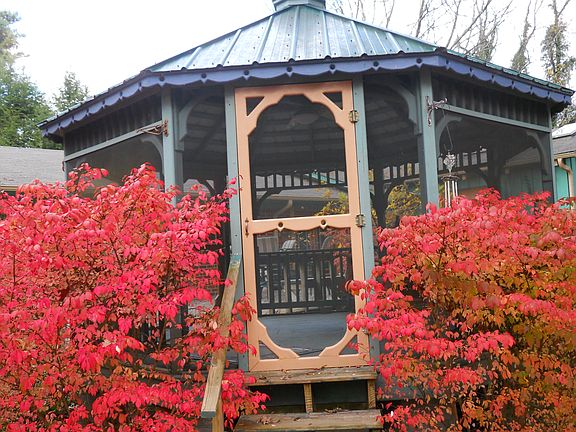 Well landscaped for its natural environment; this property boasts its own potting shed/workshop, spacious deck w/screened Gazebo, sunroom, MBR w/gas log fireplace and jucuzzi, Hearthstone woodstove in LR and a bar in the den. Could easily be a 4 BR home.