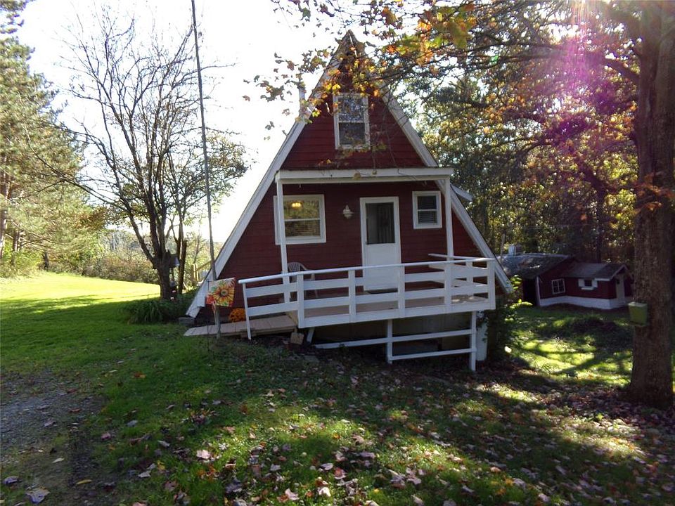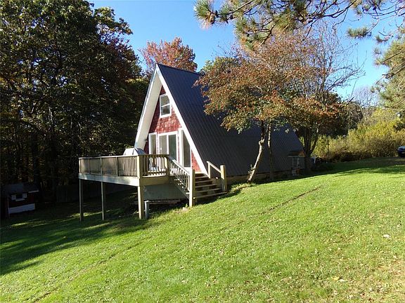 This adorable A Frame is nestled in the woods with beautiful views;Enjoy the privacy of the country on 2+ acres, yet not far from all the conveniences of groceries, RX, retail shopping, gas, restaurants, doctors, veterinarian, car wash, etc. Stainless Steel Appliances 6 yrs old; Dishwasher is not hooked up but can be easily; Metal Roof; Views from Bedroom Loft and large Deck; Sliders from Living to Deck which is 5 yrs old; Big old Barn w/garage door needs new roof, has 100 amp electric; Nice shed for outdoor equipment; Basement is unfinished, but can add 428 more sq ft when finished; 2nd Bathroom is already plumbed in Basement; Basement is Walk out; Washer/Dryer As is; Mature Timber on property. CASH, "AS IS" only. No exceptions. This is an Estate, no Property Condition Disclosure is provided by heirs; Driveway is Deeded Right of Way from Brotzman Rd to property. Come take a look at this adorable private haven.