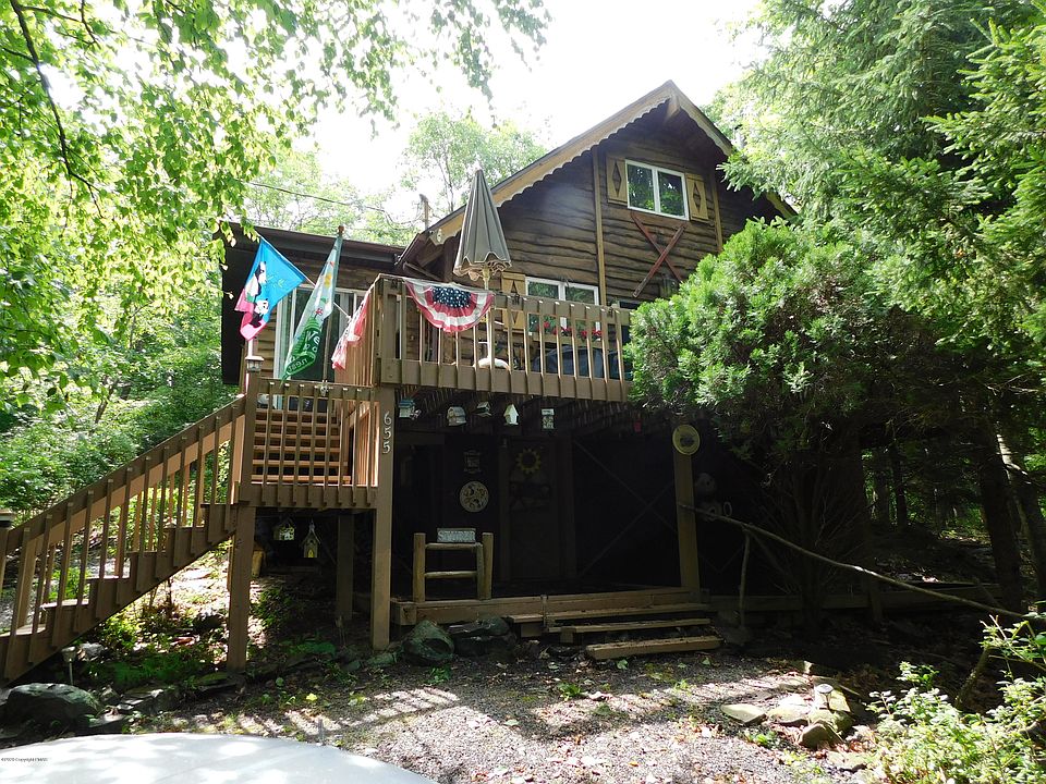 What a find! A cozy and charming tucked-away Chalet sitting back off the road surrounded by trees and nature. Located in Timber Hill. It has a lovely raised deck where you can sit and enjoy the solitude. A spiral staircase that leads to a loft that can be used as a third bedroom with its own balcony off the rear of the house. There is a bonus room down in the basement. Just a quarter of a mile from this lovely home is a stream and a hiking trail. Paradise just waiting for you!