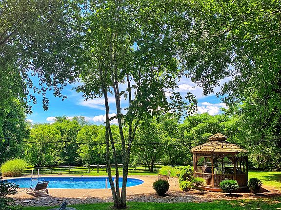 Welcome home to this impeccably maintained 4 bedroom 2.1 bath tudor colonial located in Neshanic Station. This beautifully maintained home sits on over 3 luscious acres which faces and backs up to green acres. The home boasts its grand family room addition which includes 18 ft cathedral ceilings topped with a double sided stone fireplace leading into the living room. Attached by french doors, the great room leads into the living room with ample amount of living space between the two rooms. The home has been renovated and maintained inside and out. Interior upgrades include the kitchen, master bathroom, and the hardwood floors on the first floor. Beautiful granite counter tops and refaced cabinets compliment the beautiful stainless steel appliances in the kitchen. The master bathroom renovations include a sleek tiled shower with glass doors and a grand soaking tub. Exterior upgrades include roof, gutters, pool liner, and pool house/shed. The fenced in backyard has an in-ground pool with ample amount of yard space that goes beyond the wood fencing. The grand deck, perfect for entertaining, has easy access into the home with a sliding door in the kitchen and sliding french doors in the living room and family room allowing plenty of backyard access. The deck overlooks the newly lined pool, gazebo, and landscaped backyard. Abundant amount of storage within the basement and attic with both having endless opportunities of being finished. Hardwood floors run throughout the entire home. Very private yet conveniently located close to route 202 and easy access to routes 78, 287, and 22 making for an easy commute. Close to nearby elementary school, several natural parks, and even Neshanic golf course. This beautiful estate has endless possibilities while all you have to do is move in and unpack! This captivating property is one you truly need to see for yourself.