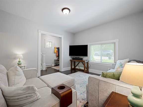 This charming three-story home offers space, style, and updates throughout! A welcoming landscaped front yard leads you inside to hardwood floors that flow throughout the main level. The spacious living room is flooded with natural light and connects seamlessly to the open-concept dining and kitchen area. The kitchen is beautifully updated with Corian countertops, stainless steel appliances, and a sliding glass door that opens to a large rear deck—perfect for entertaining. A full bathroom on the first floor is fully renovated for convenience. Upstairs, the primary bedroom features a walk-in closet, with two additional bedrooms and another full bath completing this level. The third floor includes two more rooms, ideal for bedrooms, a home office, or a playroom. The lower level has updated mechanicals, laundry, and ample storage. The backyard is a blank canvas ready for your personal touch. Don’t miss the spacious deck and outdoor potential!