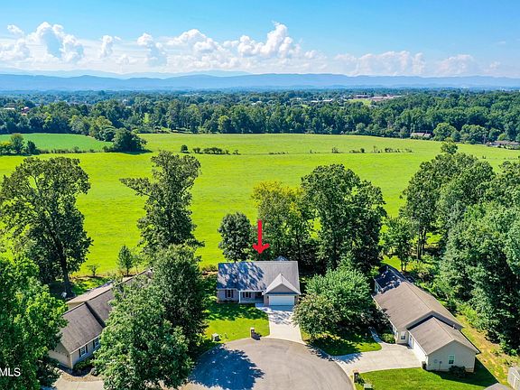 Pretty brick one story home with no steps! Built in 2017 and offers pastoral and mountain views from the large rear covered porch. Quiet neighborhood of well kept homes and located at the end of a cul-de-sac.Interior features: wood flooring & beautiful tile except plush carpet in bedrooms. Open floor plan with big windows to admire the rear view. Large kitchen with pull out drawers and pantry, solid surface countertops, breakfast bar, eat in breakfast nook + a dining area with built in desk that could be a fantastic office too! Soft close cabinets & doors, Central vacuum, split bedroom plan, master bath w/ separate soaking tub & shower, double sink high vanity, awesome closet space thru out, separate laundry room, crown molding, hi hat lights & volume ceilings. City water & Sewer. The exterior features a lovely covered front porch, level lot, composite cedar shake accents adorn the home, brick on front and rear of home. Attached 2 car Garage with storage room. Large covered rear deck with 2 French doors to enter the home but you will never want to leave! Shade trees in back, gutter guards installed in 2020. Fantastic neighbors. The peaceful pastoral views with mountain backdrop would inspire any painter! EZ access to shopping, hospital, airport and Clayton Center for the Arts shows. Sentricon System in place for termite prevention. Move in ready and waiting for your personal touches.