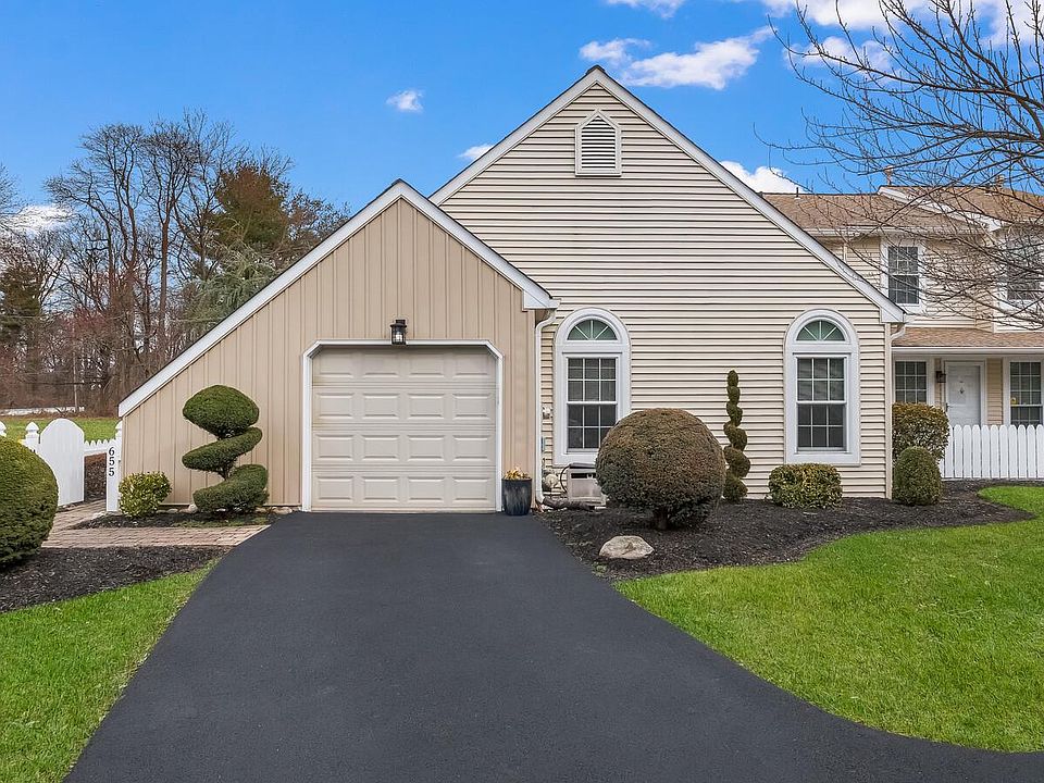 3 BR, 3 full Bath end unit townhome in Huntingdon Brooke! Fenced front yard offers paver walkway leading to a covered front entry into Great/Family room with cathedral ceiling, chair rail, wood-burning fireplace & hardwood floors that continue into the Dining room & Kitchen. The dining room offers recessed lighting, chair rail, triple sliding glass door that leads to a large wrap-around deck overlooking open space. Half wall from Dining room to Kitchen with white cabinetry, newer granite countertop & backsplash, electric Cerran top range with overhead microwave, stainless steel under-mount sink & built-in dishwasher. First floor Master bedroom with double closet, cathedral ceiling with ceiling fan & full Master bath with tiled walk-in shower with glass door, large vanity with granite countertop & ceramic tiled floor. The second bedroom offers hardwood flooring, ceiling fan & custom molding. Full hall bath with ceramic tile floor & tub/shower combination with ceramic tiled walls. Full, finished walk-out Basement offers a 3rd full bath with walk-in glass door shower with tiled walls, 3rd bedroom with wall-to-wall carpet & recessed lighting & large entertainment space with recessed lighting, sliding glass door leading to patio & open space. 1 car attached Garage plus driveway offer plenty of parking. Association offers a community pool & tennis courts. This is a must see!