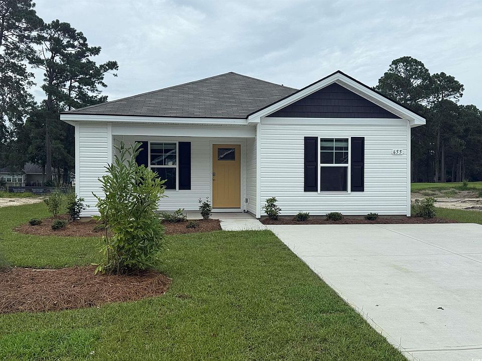 This thoughtfully designed one level home makes for the perfect beach cottage! With an open concept living room and kitchen, this home is bright and spacious. The kitchen offers granite countertops, 36" cabinets, a pantry, stainless steel appliances including a refrigerator, and breakfast bar! Your primary suite awaits off the back of the home with a spacious walk-in closet and master bath with double sinks, and 5' shower. The guests bedrooms are separate from the owner's suite offering privacy. Blinds included on all standard windows. Enjoy the coastal air on the welcoming front porch! This is America's Smart Home! Each of our homes comes with an industry leading smart home technology package that will allow you to control the thermostat, front door light and lock, and video doorbell from your smartphone or with voice commands to Alexa. *Photos are of a similar Lewis home. Pictures, photographs, colors, features, and sizes are for illustration purposes only and will vary from the homes as built. Home and community information, including pricing, included features, terms, availability and amenities, are subject to change and prior sale at any time without notice or obligation. Square footage dimensions are approximate. Equal housing opportunity builder.