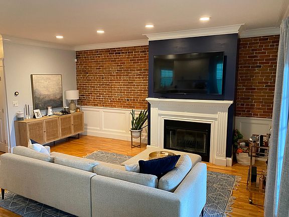 NO BROKER FEE! Charming 2 bedroom, 2 bathroom apartment with office nook in South Boston. Features include recently renovated kitchen and bathroom, rare 9'+ ceiling heights, exposed brick, central A/C, French doors off the living/kitchen area that lead to a large deck with a natural gas connect, wood-burning fireplace, dishwasher, hardwood floors, new stainless steel appliances, oversized storage in basement, in-unit washer/dryer and a large backyard. Pet friendly. Date Available: Sep 1st 2022. $4,000/month rent.