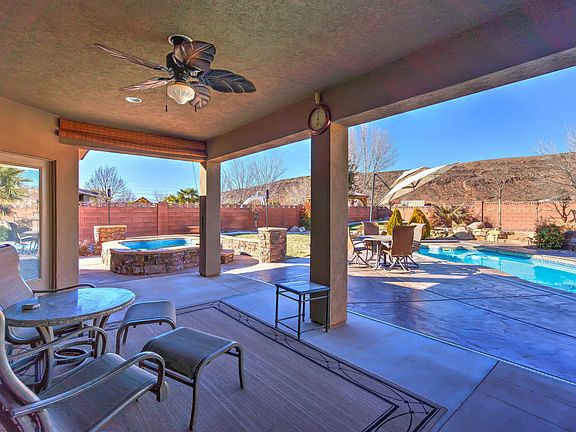 Great Community, 46' RV Garage along with additional space for more RV parking. Private Pool & Spa (Pool Bath & outdoor shower) 2 Water Features. Gas fire pit & Tiki torches, private yard with views 4 Bed + office or the office can be a 5th bedroom. 2 HVAC Zones, Dixie Power