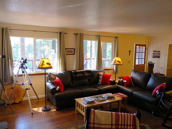 Situated within the Lake Almanor Country Club this wonderful 3 bedroom 2 bathroom home features a open floor plan, wood flooring, vinyl dual pane windows, two car detached garage, and a large Trex deck from which to enjoy great views of the lake! No matter if your basking in the warmth of the wonderful wood stove in the winter, playing a few rounds of golf with friends, or cruising the lake this beautifully maintained home will offer a wonderful retreat for you and your family for years to come. This is a super clean cabin with a nice lake view!