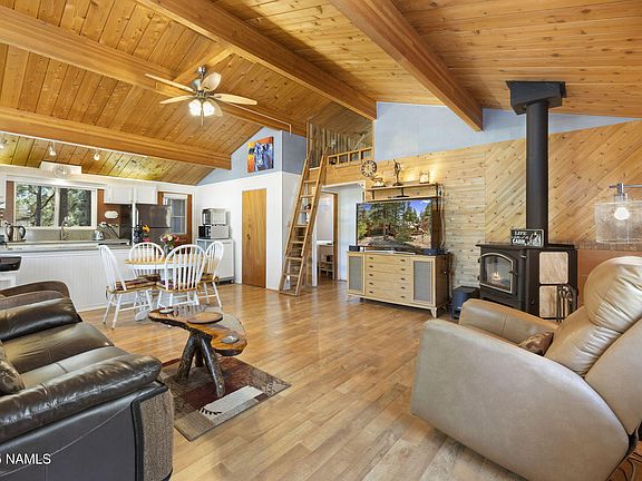 The main house features two bedrooms, two bathrooms, and a loft that works great for extra sleeping space. The living room is warm and inviting with a wood-burning stove. Step out onto a composite, wraparound deck and enjoy the fresh air and cool Munds Park summers.