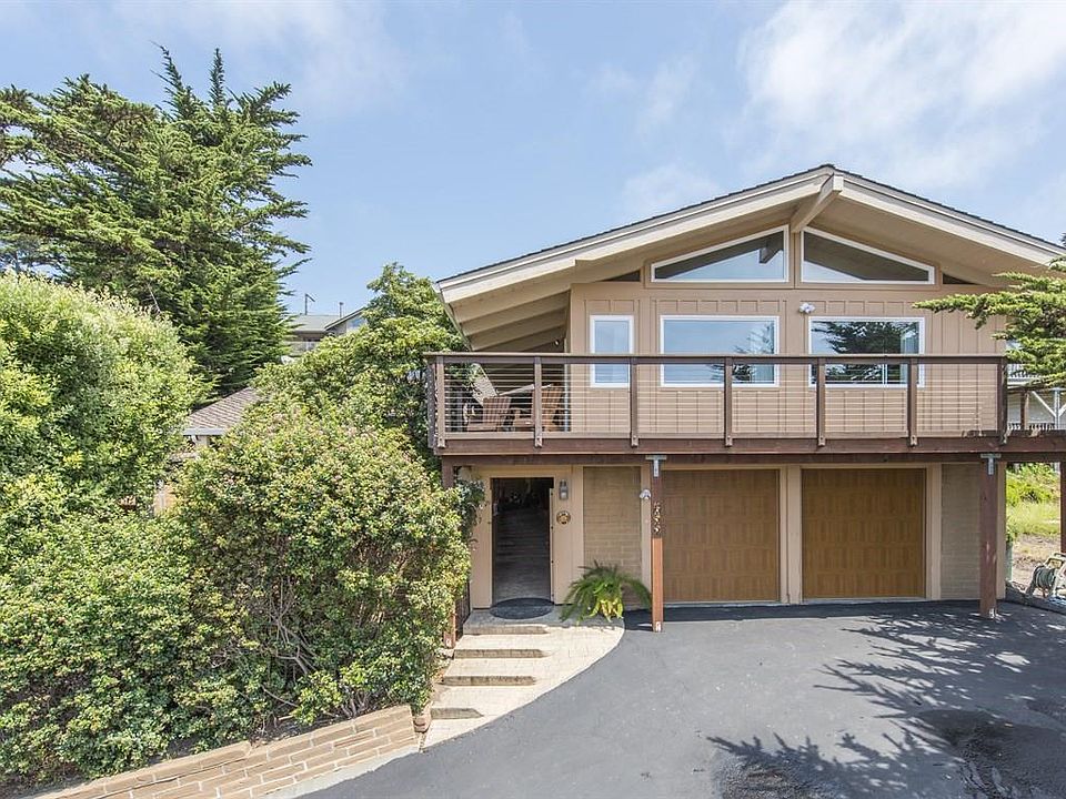 Sunsets and Serenity! Wake Up to ocean views and watch amazing sunsets from each level of this coastal bungalow. It offers loads of privacy and tranquility. The home has 2 bedrooms with a flexible 3rd room that can serve as bedroom or office, and 2.5 bathrooms. The home is located on a 15,000+ sq.ft. lot with a park like setting. The charm begins with the unique courtyard entry that leads to a light and airy open floor plan that offers, welcoming, rustic, hospitality - perfect for entertaining. The bathrooms have been updated & remodeled including travertine floors, vanities, lighting and more. The large kitchen has granite countertops, an island with a butcher block top, and newer high-end stainless steel appliances. The Master bedroom is over-sized as is the nicely appointed master bathroom. Custom light fixtures are in the dining areas & baths. The current owners replaced all the windows and exterior doors, the wraparound deck, upper siding, roof, and rear retaining wall. Come see