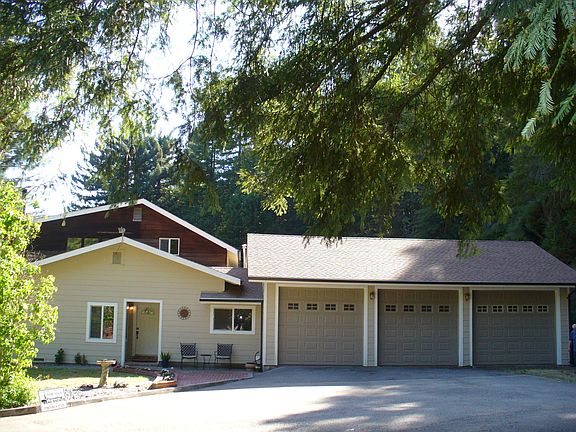 Contingent on lender approval, seller will consider back up offers. Redwoods and sunshine on this beautiful private property. Great 2500+ sq ft ranch home with 3 bedrooms, 2 baths, and office or den. Nice laundry room. New laminate flooring and carpet. New Gas Range and Dishwasher. Large three bay garage, and Quonset hut shop with separate 100 amp power meter. Sunny large yard with raised garden beds. Nearby Gibson Creek water runs under the redwoods, peaceful and serene. Enjoy the nice summer evenings on the back patio in the jacuzzi tub. On two parcels totaling two acres. This is a nice set-up. Make offer.