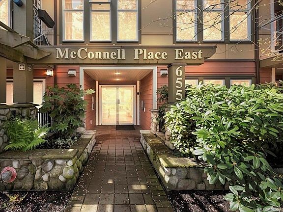 OPEN HOUSE SUN NOV 30TH, 11am-1pm. Welcome to 210–655 Goldstream Ave, a bright 2-bedroom, 2-bath home with 858 sq ft of thoughtfully designed living space in one of Langford’s most walkable areas. This modern West Coast–inspired unit features an open layout with new laminate flooring, a spacious kitchen with peninsula seating, and a cozy living room with an electric fireplace and access to a private balcony—ideal for morning coffee or summer BBQs. Bedrooms are separated for privacy; the primary offers a walk-in closet and 4-piece ensuite, while the second bedroom sits next to another full bath. Enjoy in-suite laundry, secure underground parking, and a separate storage locker. The pet- and rental-friendly building includes a fitness room, bike storage, a third-floor patio, and rooftop deck. Steps from the E&N Rail Trail, Royal Colwood Golf Club, transit, restaurants, parks, schools, and downtown Langford. Perfect for first-time buyers, downsizers, or investors.
