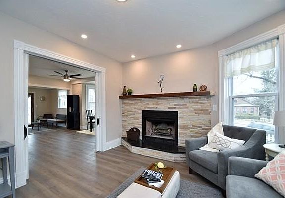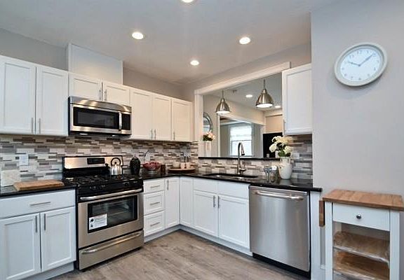 Move In Ready! Newly Renovated home boasts tons of character & charm! Walk into the sun filled living room offering recessed lighting & stunning updated fireplace complete w/ stone tile & custom wood mantel! Original pocket doors lead you into the dining room featuring recessed lighting, ceiling fan & bay window offering tons of natural light! Dining room opens to the den complete w/ trey ceilings adding lots of character & sliders out to the back deck! Gorgeous updated kitchen includes SS appliances, granite countertops w/ beautiful tile backsplash, custom cabinets & half bathroom complete w/ washer & dryer! 2 spacious bedrooms both offer ample closet space & plush W2W carpet. Large remodeled bathroom features soaker tub, tiled stand shower & dual vanity sinks. Bonus room on level 1 provides additional living space w/ potential to be used as 3rd bedroom or office – you decide! Great Location! Close to public transportation, shops & more!