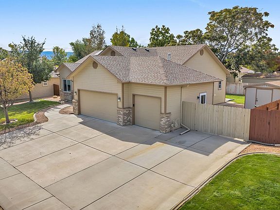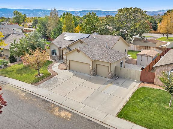 Come take a look at this beautiful home located in the north area of Grand Junction in the highly desirable Grand View Subdivision! This house has a fantastic layout! It's very spacious, offering 3 bedrooms and 2 full bathrooms! Vaulted ceilings throughout, lots of natural light to keep the home light and bright year round! The home has a double sided fireplace between the living room and formal dining room! Enjoy your weekends and evenings under the large covered back patio, offering 2 outdoor ceiling fans for your comfort! The home also offers a large walk in master closet and a 5 piece master bath with a soaker tub! All kitchen appliances stay, the water softener stays, the large shed with electricity stays. RV parking, newer windows, solar panels and so much more to offer! This is really the perfect place to call home! Call and make your appointment today!