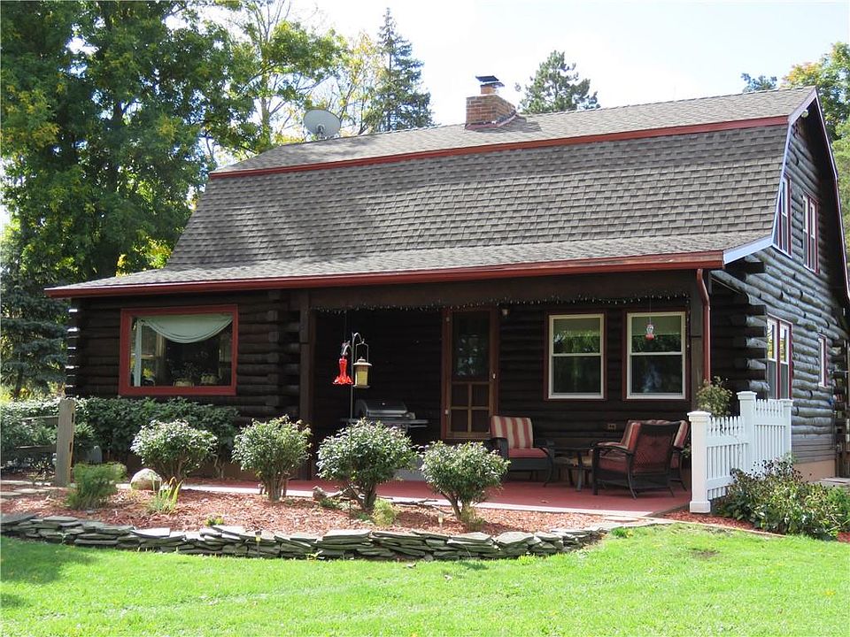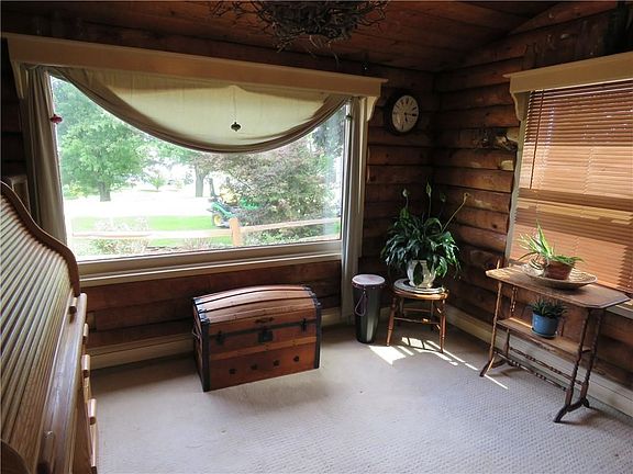 Welcome to Paradise with the most serene setting nestled on a hill overlooking meadows and woods. A true log home with the most beautiful sunsets sitting on your covered front porch . Home offers 1.13 acres with a 2.5 car detached garage and a shed, both with new roofs. Great room with a stunning stone fireplace with an insert and a corrugated stainless liner, formal dining, and a country kitchen. 3 bedrooms up and the finished lower level which town has included in the square footage has 2 egress windows and a door to outside. Lower has a family room and a bedroom with an added bonus of a new full bath. . Many new windows, sellers have converted to propane heat from oil boiler new 2018, hot water tank is 2019. New septic in 1991, home has public water, main house the roof is 2010.Includes appliances, many furnishings are negotiable. Sellers are heading south! 2021-05-20