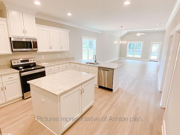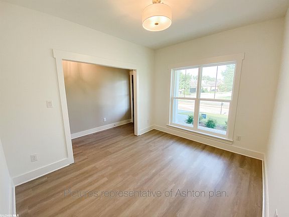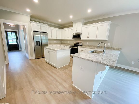 New construction, a 5-minute drive to downtown Fairhope and ready to call home! Just off the foyer with soaring ceilings is an office or bonus space with tons of natural light. Near the garage entrance is a mud bench and drop zone adjacent to the large laundry room. The open concept creates a functional flow through the living room, dining area and kitchen, featuring on-trend finishes and extra seating at the breakfast bar. Spread out in the spacious living room that boasts 11-foot ceilings and overlooks the backyard. The primary suite features a walk-in closet, oversized bathtub, separate shower and double vanities. This neighborhood is conveniently located near shopping, dining, schools, medical facilities and Thomas Hospital. Other conveniences include builder’s warranty, termite bond, Gold Fortification for added protection, and a short drive to the beach. Some pictures included are representative of similar style home.