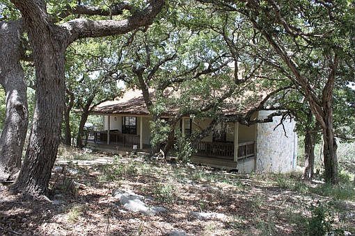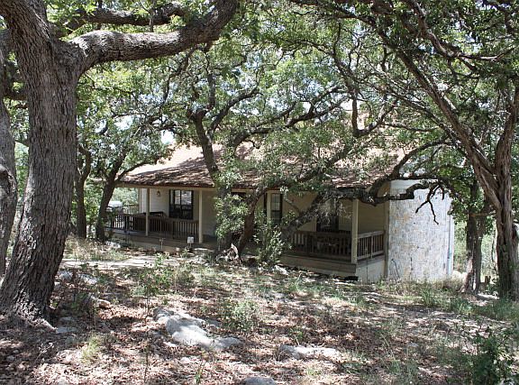 DISTANT & VALLEY VIEWS-Nestled in the Hills of the Texas Hill Country...rustic, self-contained 4BR/2BA 2,2021SF home on 5+ acres. Only 10 minutes to town...Secluded with easy access - close to schools, churchs & shopping. Hillside view w/parklike feel & mature trees. 2 wells w/1500 gallon gravity flo storage tank - solar & electric power - propane as well.Especially beautiful large plank flooring.