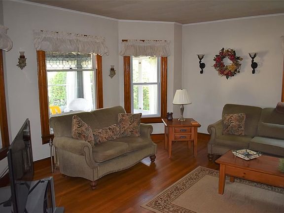 So much Living Space! 4 Bedrooms and 2 baths, Well Maintained! All totally redone with lots of woodwork and hardwood floors. this home is warm and cozy, has a welcoming feeling of being home! You will want to live here if you take a peek - incredible sunroom and deck out back, third floor has a game room and extra bedroom, fireplaces, library/den, oak open staircase. Has a 2.5 detached car garage. Close to school and Hospital. 100% Money Back Guarantee, some restrictions apply