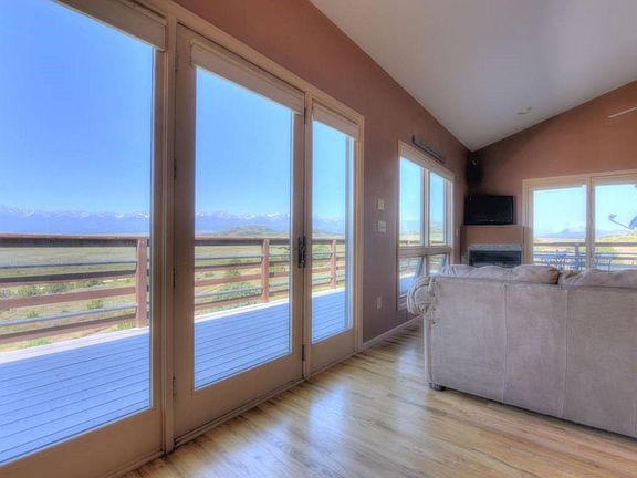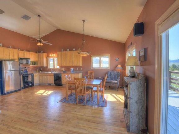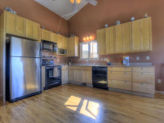 Get ready to pinch yourself each day! This 4 bedroom, 3 bath home is spacious and inviting. The beautifully painted open floor plan of kitchen, dining and living area (complete with cozy gas fireplace and vaulted ceilings) is surrounded by windows framing panoramic views of mountains and valleys. Yes, you (could) live with this stunning view every day! Relax in your airy master sanctuary filled with natural light highlighting those high ceilings that extend into the full bath where a jetted tub awaits!Two large decks overlook 35.95 acres of trees and wildlife, perfect for get-togethers. Underneath the decks, patios invite you to relax in the shade. Or get out and explore it! Hike or bring the ATVs! A large garage will store the toys. It's all yours to discover!