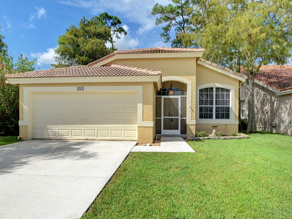 Charming 3-bedroom, 2-bathroom, 2-car garage home nestled in the heart of Wellington, within the Monterey on the Lake community, with remarkably low HOA fees. This inviting residence offers a spacious and open interior, ideal for both relaxation and entertainment. Step inside to find a well-designed floor plan that includes a welcoming living area, creating a sense of warmth as you enter. Outdoors, you'll find a lovely, covered patio area, perfect for enjoying the Florida sunshine and outdoor dining. The lush oversized yard offers ample space for gardening and play with lots of room for a pool. Wellington is known for its top-rated schools, equestrian events, and a vibrant lifestyle. With its proximity to shopping, dining, parks, and cultural attractions, you'll have everything you need right at your fingertips. Don't miss out on the opportunity to acquire this 3-bedroom, 2-bathroom Wellington home complete with a 2-car garage, large, fenced backyard, and low HOA fees.