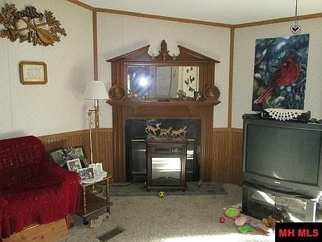 Nice mobile on large 13.26 Acres. Split floor plan, Lots of room, walk in closet, concrete storm shelter, carport, gas log fireplace, screened covered porch, paved road.