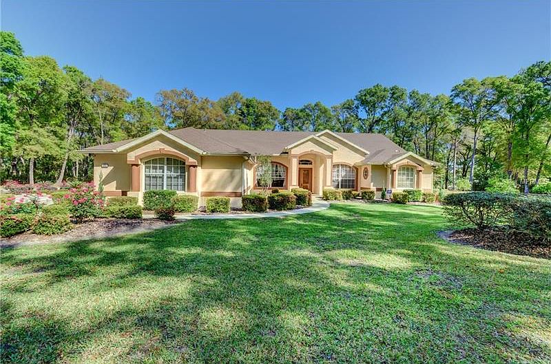 Quiet Country Living. 4Br 2Ba Executive Home on 2.5 Acres with Beautiful Screened and Heated Pool and Spa. Formal Living Room (disappearing sliders), Master Bedroom and Family have sliding doors to the large outdoor entertaining area with summer kitchen. Screened and tiled Lanai is partially covered (28x9) for those rainy afternoons. Spacious living with volume ceilings and many architectural features. Kitchen with large breakfast bar overlooks large family room with fireplace. Kitchen has deep pantry closet, recessed lighting, center work island, granite counters, stainless steel appliances, separate breakfast nook with view of lanai area. Large Master Bedroom 18x16 is carpeted for cold mornings. Master Bath has Garden Tub, Walk in Shower, His and Hers vanities and Closets and separate water closet. Split Bedroom Plan has guest bath with exterior door to pool area. Dad will love the side entry 3 car garage with HUGE circle driveway. NO HOA plenty of room to park your boat, RV, toys. This property is Zoned Ag horses and chickens are allowed. 4th Bedroom is in the front of the house with closet and French door perfect for home office if needed. Mom will love the large inside utility room with wash sink and Washer and Dryer stay. Location is great only minutes to shopping and restaurants. Quick access Daytona and Orlando. Seller will consider owner financing with acceptable offer and terms.