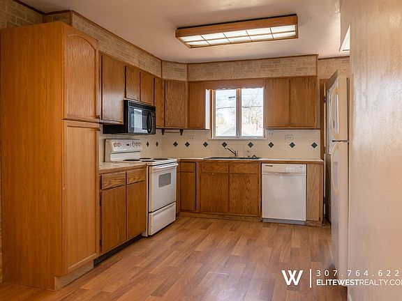 Great Location! Walking distance from downtown Powell & Northwest College. This 3 bed 2 bath home (all on main level) has good sized bedrooms and a very nice floor plan. The laundry hookups are upstairs and convenient in relation to the bedrooms. Recent updates include roof, deck, storm doors, flooring, hot water heater and more. The home has alley access to the backyard & detached 2 car garage.