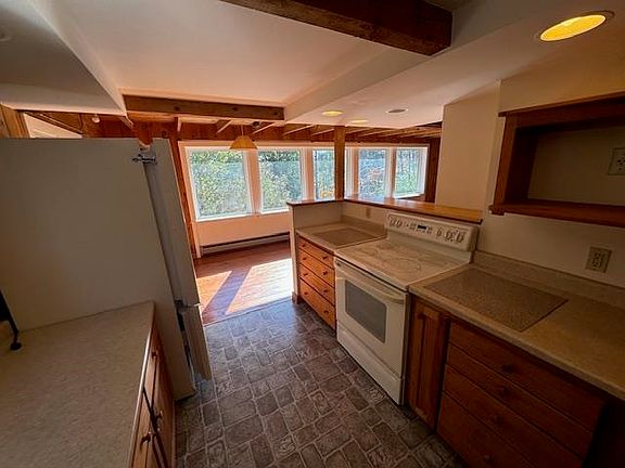 Craftsbury Common contemporary on 10.1 acres. Built in 1978, it's a lovely, 2 bedroom , 2 bath home in a small, wooded area with a single car garage. Enter the large mud room with built in closets and cabinets, then continue down a short hallway to master bedroom and large dressing room with 4 closets and built in drawers. Across the hall is a full bath. Next comes a living room with southerly facing windows exposed beams and pine floors, a dining area, and galley kitchen with upper and lower cabinets. There is a large sunroom to the west of the living room. Insulated but not currently heated. The sunroom opens to a corner covered porch on the southwest corner of the house. The second floor has 1 large bedroom with V-groove walls and ceiling. There is a corner of the room perfect for a studio or office space. Continue to a 3/4 bath with a large open space for storage. The home sits on a full walkout basement that has a wall of windows along southwest side. The walls have spray foam insulation. There is an over-sized insulated door that one can walk out under the porch to the side yard. There is a laundry on this level., plus lots of open space for future possibilities. In the side yard is a garden shed, and a single car detached garage. A small stream crosses the property. The house sits in a small, wooded area offering privacy from the road. With some trimming, a south-west view would emerge. Approx 3 acres of field at the back and XC ski trails beyond.