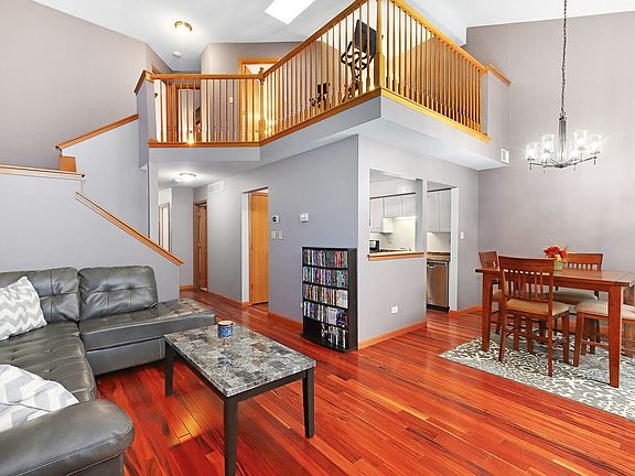 AWESOME LOCATION FOR THIS SPACIOUS, UPDATED 2 STORY TOWN HOME! THIS OPEN FLOOR PLAN UNIT BOASTS GLEAMING HARDWOOD FLOORING, UPDATED LIGHTING, SHARP WHITE KITCHEN CABINETS, NEW STAINLESS STEEL APPLIANCES IN 2017 (REFRIGERATOR, OVEN/OVEN HOOD, STOVE & DISHWASHER) DINING ROOM WITH SLIDING GLASS DOORS LEADING TO PRIVATE TREE LINED PATIO GREAT FOR GRILLING OR JUST RELAXING! OVER-SIZED VAULTED CEILING LIVING ROOM WITH STUNNING MARBLE FIREPLACE! 2ND FLOOR GENEROUSLY SIZED LOFT WITH BRIGHT AIRY SKYLIGHT PERFECT FOR EXTRA SITTING AREA OR EXERCISE SPACE! LARGE MASTER BEDROOM WITH HUGE WALK-IN CLOSET & 2ND BEDROOM BOTH HAVE NEW CUSTOM CEILING FANS/LIGHTING & 8mm FIRESIDE AFRICAN ROSEWOOD FLOORING ALL INSTALLED IN 2017! NEW WASHER/DRYER IN 2017, WHOLE UNIT FRESHLY PAINTED WITH NEUTRAL COLORS THRU-OUT! SMART HOME NEST INSTALLED (ACCESS FROM PHONE TO GARAGE DOOR, FRONT DOOR, LIGHTS ETC...) AT & T TRANSFERABLE SECURITY SYSTEM! SPACE UNDER THE STAIRS & ATTIC FOR EXTRA NEEDED STORAGE! CONVENIENTLY LOCATED MINUTES FROM 355 EXPRESSWAY, SHOPPING, DINING & MORE!
