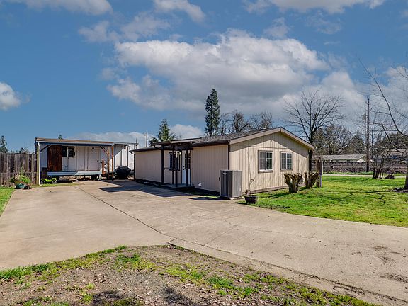 Back on market due to buyer not property. 1997 manufactured home 3bed 2bath on its own land, on a full block permanent foundation with crawl space, on a partly fenced comfortably sized corner lot central in town with shade trees, and flat full sun areas for your gardens. Recently upgraded all windows, kitchen cabinets, countertops, black stainless wifi appliances (full house matching set), black stainless sink, fixtures and valves, flooring, wifi heat pump/AC with new air handler ducted to EVERY room, impressively efficient through the whole year at any temperature in any room. One of the two bathrooms has been upgraded. Concrete driveway, RV and toy parking++ and still extra room to add a garage, 8x27x8 shop/storage trailer w/ porch, power, and lots of shelving but may also hold great ADU possibilities!