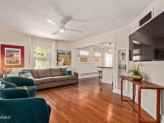 You are going to love this one of a kind home in the Evergreen Historic District of Mesa. The tree lined street and covered porch are just the beginning of the charm of this home. Lovingly remodeled and updated with new kitchen and main bathroom, 2nd bath has been updated as well. The primary bedroom with sitting area (easily converted to 2nd bedroom) is at the back of the house. The living room dining room and kitchen are in the front of the home. Huge corner lot currently has a vintage trailer office area and shop. Plenty of room to expand the footprint of the house in the future!