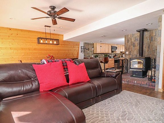 - Walk-in Closets, Ceiling Fans, Wood Burning Stove, Flooring- Carpet, Flooring- Laminate