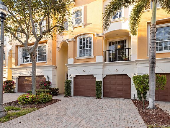 Sophisticated Tri-level townhome in East Boca Raton! Recently upgraded in first class style & timeless finishes! Spectacular kitchen with butler's pantry, huge island & gas cooktop! Charming detail includes warm, wood-tone floors, eye-catching arches & niches, crown molding, plantation shutters & exquisitely appointed kitchen & baths. Sleep soundly on the 3rd floor; enjoy cooking/socializing on the 2nd floor in the gourmet kitchen, family room, dining room & den; venture outdoors from the 1st floor w/large bonus room, half bath and a sun-swept patio! Trieste offers a manned guard gate, all impact glass windows & sliders, Mediterranean architecture, picturesque tree-lined streets & heated community pool & spa. 5 minutes to the beach! Close to downtown Delray Beach AND downtown Boca Raton