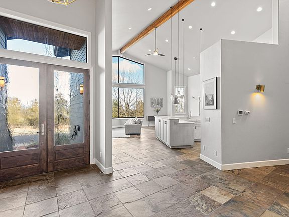 This light filled home is bright, airy & cozy! With a wall of windows letting in natural light & views of the park, the home provides an inviting ambiance. Park, trails & a lovely neighborhood are right out the front door. The 3299 sft floor plan is perfect with a great room, vaulted ceiling, exposed beam, gas fireplace, stone floors, recently updated kitchen with island, marble slab counters, quality appliance package, 2 en-suites and a flex room all on the main level. Upstairs offers a loft & 2 more spacious bedrooms & a full bathroom. The .24 acres provides a big, fenced yard with a spacious deck and a big paver patio and fire pit area. You will find plenty of room for vehicles, gear, home gym, etc. in the 2 car tandem garage. Full brochure available upon request!