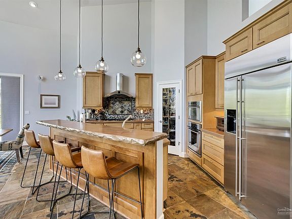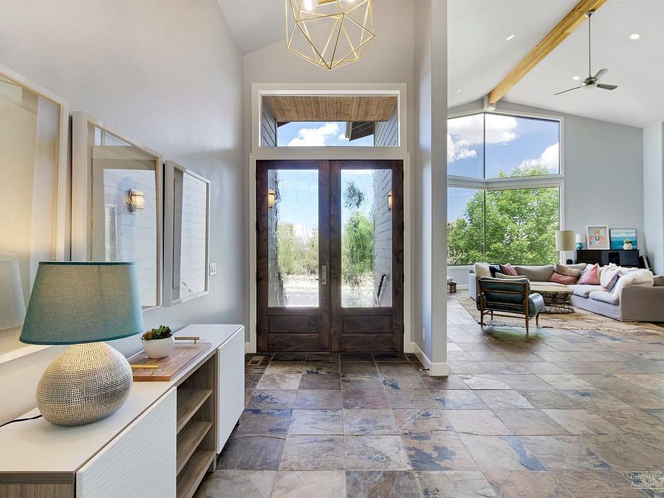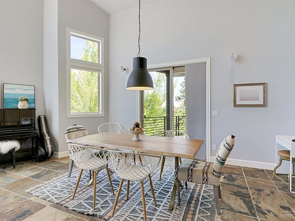 Inspirational Views through the floor to ceiling windows overlooking Sawyer Park & entrance to the River Trail located in the desirable Awbrey Park neighborhood. Grand stone fireplace & heated slate flooring. Chef's kitchen features concrete counter's, GE Monogram appliances. Spacious Master Suite has a custom slate shower & jetted tub with an additional bedroom suite on the main level. 2 additional large bedrooms & bath upstairs. Enjoy a fun backyard & three car tandem garage to host all your toys!