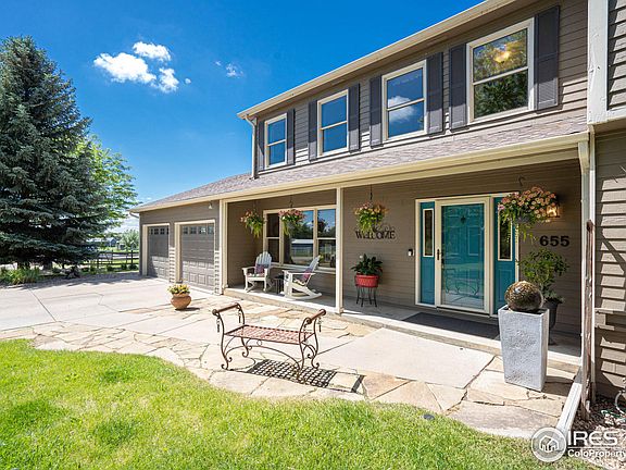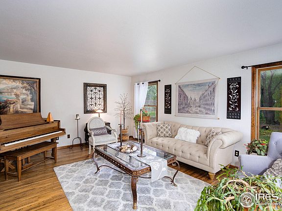 Stunning 2.56 acres minutes from town w/ spectacular mtn views! The beautiful orchard welcomes as you come up the drive. Well appointed study & living rm greet as you enter. Enjoy sparkling antique hdwd floors thu-out main level. Classy kitchen boasts Quartz countertops, stainless appliances, plenty of cabinet & counterspace, & gas range. The 255 sq ft sunroom w/ a wood burning stove & offers comfortable & relaxing space all year. Wonderful primary bedroom w/ 5-piece bath & walk-in closet. The outdoor living space is amazing! Huge patio, hot tub, shady pergola w/ tranquil waterfall running through. The incredible landscaping & garden beds that surround you is a retreat, you'll never want to leave! Drip water to everything! 2 sheds & the additional 400 sq ft shop w/ 220 elec offer plenty of room for toys & projects! Plenty of fun to be had in the treehouse & playhouse. 3/10 share of Buckingham Ditch included. No HOA! No Metro District! Make this amazing property yours TODAY!