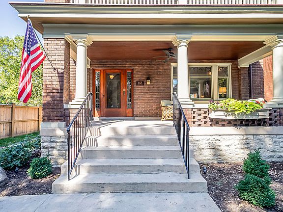 This exceptional 1913 Craftsman-style home, located on a quiet, tree-lined brick street in the heart of the East Row Historic District, is a rare find! Fully renovated in 2013 with meticulous attention to detail, the home boasts new plumbing, wiring, and HVAC, while preserving its historic charm with features like original stained glass, gleaming oak floors, natural woodwork, and pocket doors. The spacious kitchen is equipped with custom cabinets, soapstone countertops, high-end appliances, and a walkout to a beautifully landscaped backyard.