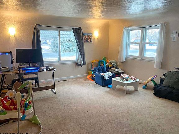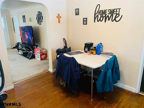 Cute corner bungalow perfect for first time home buyers! 3BR/2BA with the possibility of a 4th bedroom. Large LR as you enter, formal DR with wood floors and quaint kitchen. All appls stay. Basement has FR, and two additional bedrooms. No egress windows currently. Master bedroom in basement has master bathroom. Laundry and extra storage room in basement too. Detached single garage, updated windows, wood fenced yard with UGS, storage shed, vinyl siding, great corner location. Walk to schools and downtown. LR has hardwood floors under carpet. Per seller, this loan is an assumable VA loan that will work for any buyer. Rate is locked in at 2.49%. Call today and take advantage of this incredible interest rate!!!