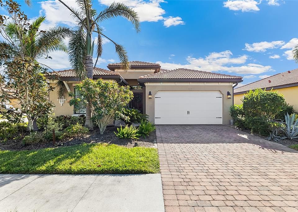 Just a couple miles from the turquoise waters of Nokomis Beach on Casey Key, the boutique neighborhood of Calusa Park beckons you home. This wonderful CORNER LOT home built in 2016 has an open concept floor plan and features granite countertops in the kitchen and both bathrooms, trey ceilings, plantation shutters, Slate 'smudge-proof' GE appliances, custom lighting, ceiling fans in all bedrooms and Great Room, diagonally set tile, and new vinyl plank flooring in bedrooms. Enjoy remarkable SUNSETS past the side VIEW of the LAKE from the screened-in lanai complete with OUTSIDE KITCHEN and EXTENDED paver patio surrounded by lush greenery, palms, oak and pine trees. You can relax by the inviting community pool just down the block or stroll, run, bike the popular Legacy Bike Trail that borders the neighborhood and runs from Venice to Sarasota. The location is perfect. Besides being just minutes from the beach, Nokomis is located between quaint Downtown Venice to the south and Sarasota to the north. It is about 5 minutes from I-75 and the new Sarasota Memorial Hospital as well. With high-rated schools, shops and dining nearby, this beautiful home will check off your boxes and provide the serene Florida experience you desire! This newer home with custom the ceiling fans, window treatments, lighting, and ultraviolet light in the AC unit has NO EXPENSIVE CDD FEES ATTACHED TO YOUR ANNUAL PROPERTY TAXES. Move in and enjoy!