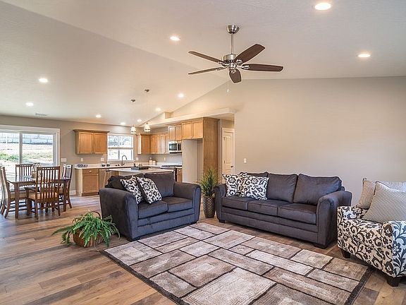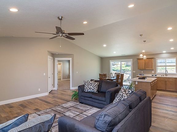 Brand new attractive one level home with upgraded features! Granite counters, stainless steel gas range and island eating bar! Perfect for entertaining! The open floor plan features high ceilings over the great room with gorgeous views of the mountains and valley! Concrete patio off the dining room is perfect for outdoor entertaining or relaxation. Split bedroom floor plan with spacious bedrooms & private master suite! Laundry room with tiled floor. Attached garage and & front yard landscaping!
