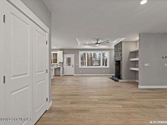 Another stunner by AK Signature Homes! This home is the perfect ranch style with 3 bedrooms, 2 bath,1790 sqft of living space and a huge garage 837 sqft with 27.5'' in depth! You will love the large pantry with butcher block/window and laundry room conveniently located by the master bedroom. Tons of upgrades throughout. Upgraded cabinets, tiled shower and separate soaker in master, quartz counterAnother stunner by AK Signature Homes! This home is the perfect ranch style with 3 bedrooms, 2 bath,1790 sqft of living space and a huge garage 837 sqft with 27.5" in depth! You will love the large pantry with butcher block/window and laundry room conveniently located by the master bedroom. Tons of upgrades throughout. Upgraded cabinets, tiled shower and separate soaker in master, quartz counters throughout the home, and 9 ft ceilings. Other upgrades include cabinets with quartz counter and shelving for built-in entertainment center, stacked stone gas fireplace with shiplap, bench in entry way for shoes, butcher block folding shelf in laundry room, double shower heads in master bath, all black fixtures, recessed lighting in master/dining/living room, covered and vaulted Trex back deck 14x10, Tongue and Groove front deck with Trex, paved driveway, some mountain views and plenty of room for a shop still! Don't miss this one! Come see it for yourself. Neighborhood streets are paved.