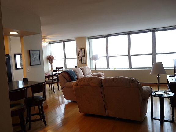 **Photos are from prior tenancy** BEAUTIFULLY UPGRADED SPACIOUS 1 BEDROOM WITH HARBOR & LAKE VIEWS. THIS LARGE FLOOR PLAN FEATURES HARDWOOD FLOORS IN LIVING AREA, OPEN KITCHEN WITH BREAKFAST BAR, MAPLE CABS, DINING SPACE, NICE BATHROOM & GREAT CLOSET SPACE. RENT INCLUDE HEAT, A/C, BASIC CABLE, POOL, SUN DECK,GRILLS, EXERCISE ROOM & 24HR DOORMAN.ON SITE FACILITIES INCLUDE GROCERY STORE,DRY CLEANERS & HAIR SALON. VALET PARKING OFFERED SEPARATELY @ $200.