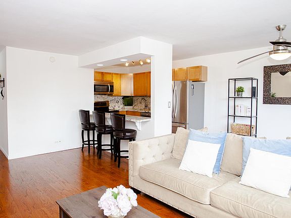 Great unit in a great building. Open Kitchen and open floor plan. Granite Counters and backsplash on top of maple cabinets. Stainless appliances. Beautiful hardwood floors throughout. Bathroom tastefully redone with white tile. Walk to the lakefront, Wrigley field, grocery stores, and the redline and busses. The building has one of the best and biggest pools in the area, a party room, and a professional gym. Parking is valet and is an extra $20,000 Spot #V36